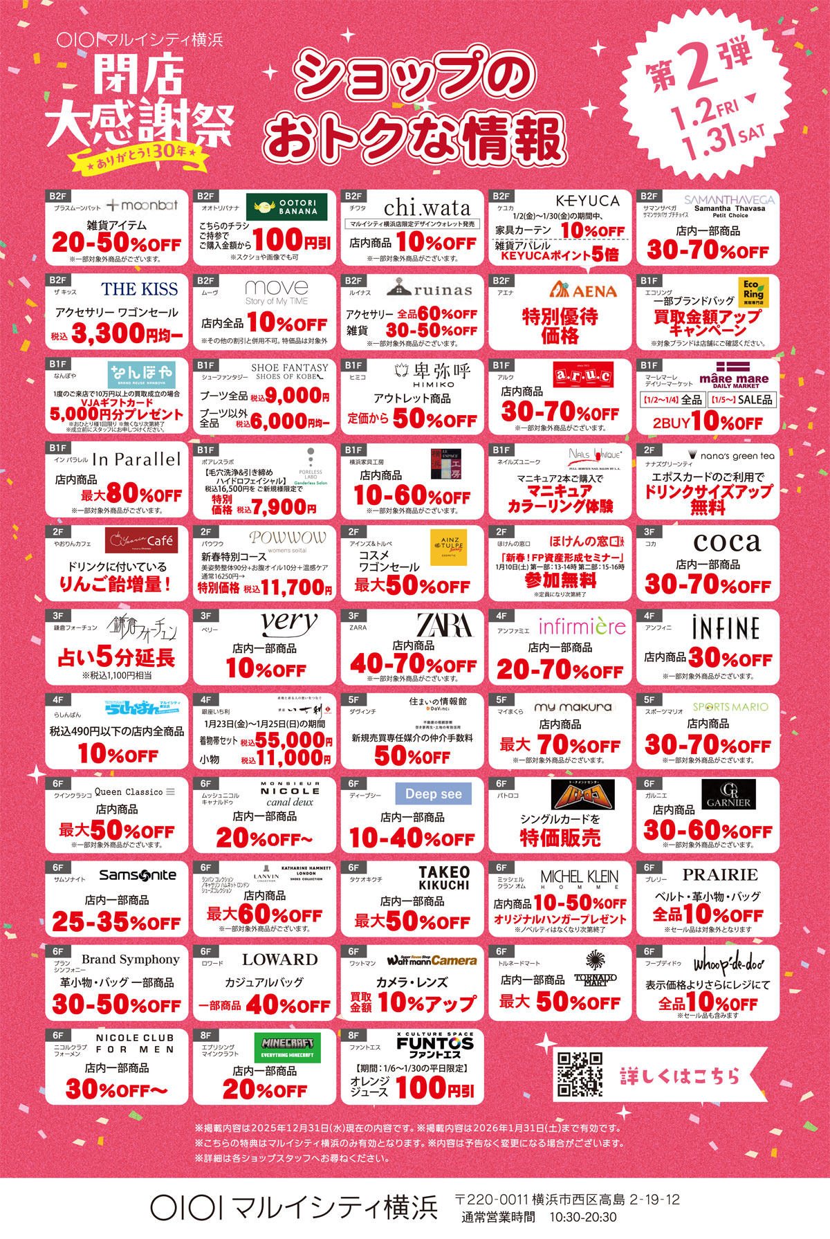 2月28日(土)で閉店を決めているマルイシティ横浜では昨年(2025年)12月から閉店セールを行っており、現在は第2弾を1月末まで開催しています。